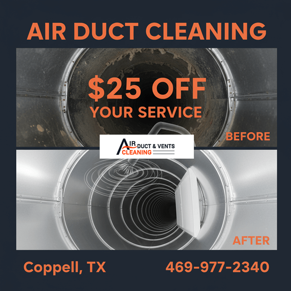 Schedule your air duct cleaning appointment today with Coppell TX Air Duct Vents — enjoy cleaner air, same-day service, and a free estimate!